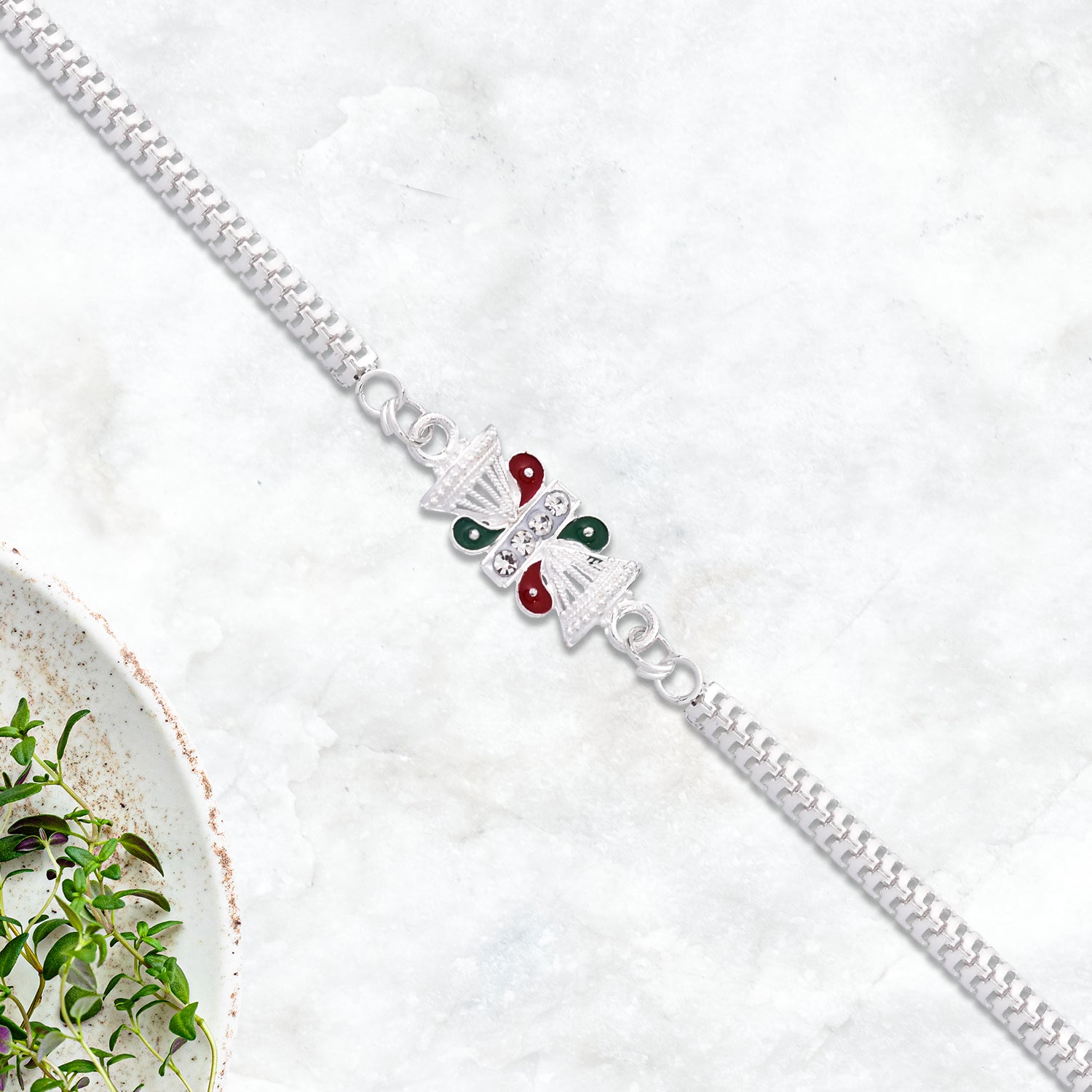 Twin Kalash Design Silver-toned Rakhi